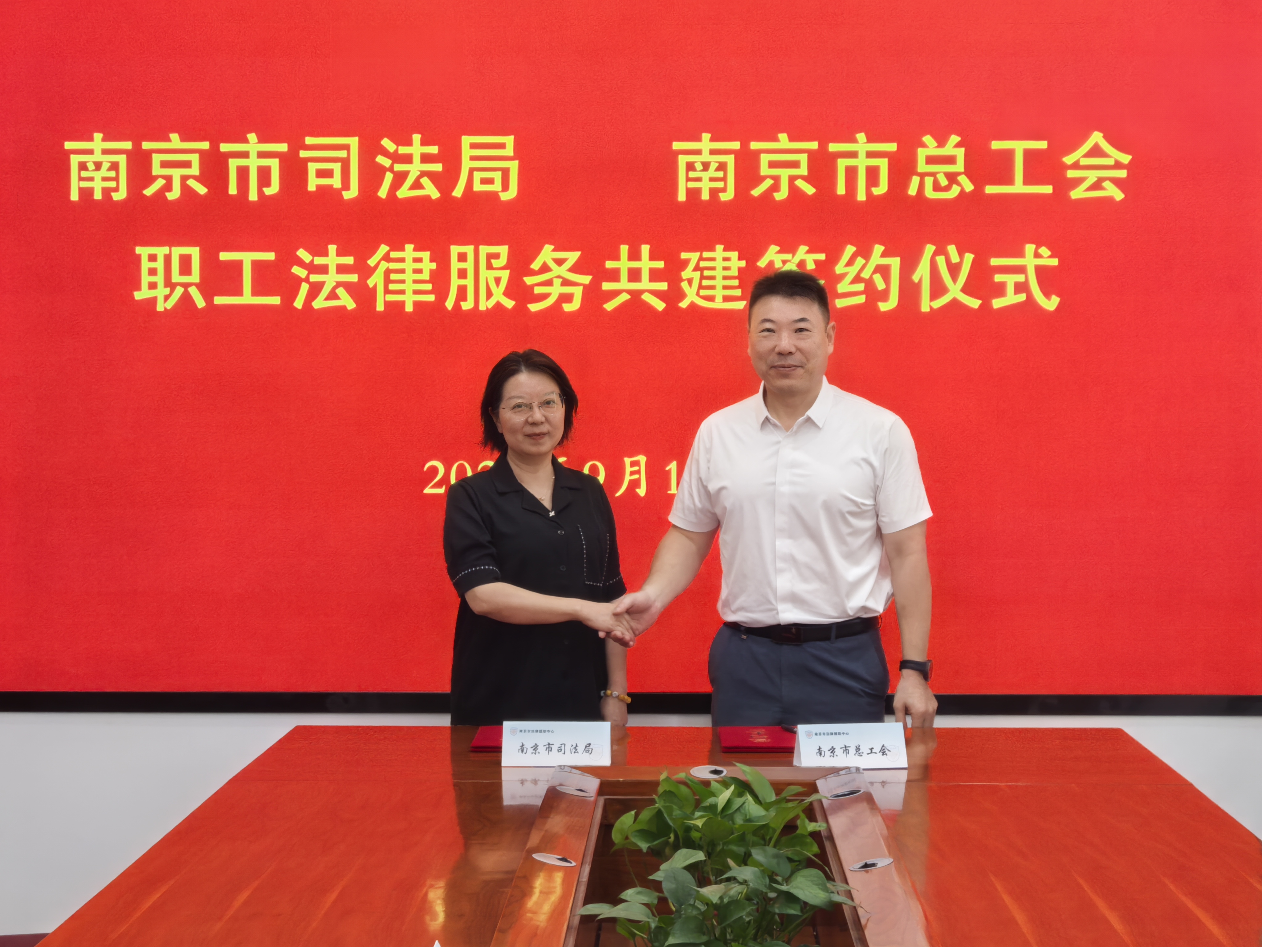 会上,双方共同签署《南京市职工法律服务共建工作协议书》,明确双方通过法律援助、律师队伍建设、法治宣传、案例编写等方面合作,共同开展职工法律服务共建工作,不断推进工作制度化、规范化、常态化建设,通过资源共享和工作创新,共同为推动和谐劳动关系提供有力支撑和保障。