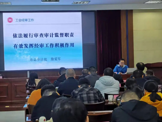 在业务赋能方面,江苏省金牌劳动关系协调员梅从明对《江苏省集体协商条例》进行解读,并传授了协商技巧;市总经审会副主任詹爱军从审计视角剖析工会经费管理难点,提出了规范使用路径;南京市职工互助会胡雷部长深度解读互助保障政策,助力职工权益保障精准化。