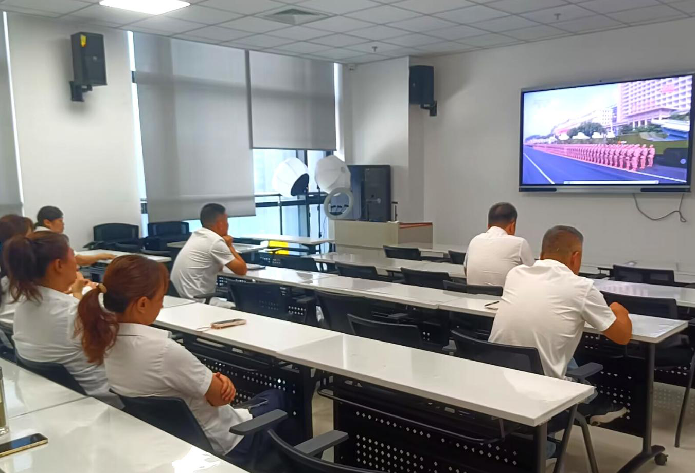9月3日上午,纪念中国人民抗日战争暨世界反法西斯战争胜利80周年大会在北京天安门广场隆重举行。市职工服务中心党支部组织全体党员、干部、职工集中观看了电视直播。